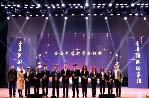 (颁奖嘉宾为金石包装奖学金获奖同学颁奖)