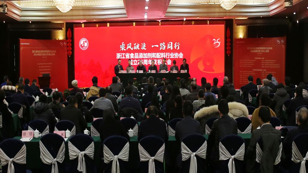 2020年1月3日,浙江省食品添加剂和配料行业协会成立25周年庆祝大会暨高层论坛在杭州举行,会议分别由现任会长邵斌和秘书长何春毅主持,浙江省市场监督管理局卢永福副局长、省经信厅消费品处刘伟龙副处长、省市场局食品处毛林燕副处长等出席并致辞,协会创始人童永和、前会长黄仙堂、浙江省内食品添加剂和配料龙头企业、省添协专家委员会、省添协外贸委员会等约150人参加。
