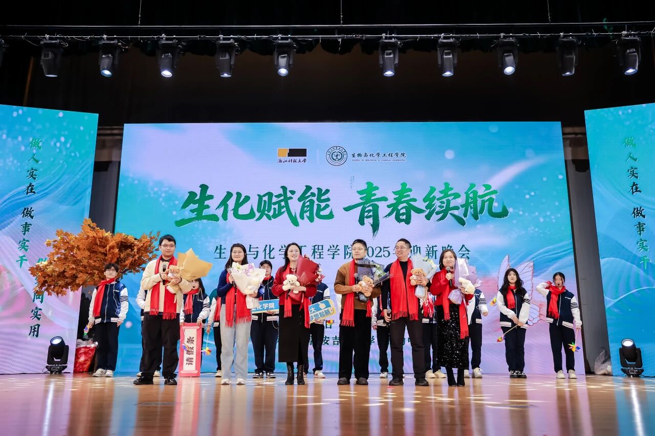 12月22日晚,浙江科技大学生物与化学工程学院“生化赋能,青春续航”2025年迎新晚会圆满落幕。浙江科技大学党委副书记单胜道,浙江科技大学原党委委员、生化学院创始院长毛建卫,安吉校区管委会副主任、管理学院党委副书记、纪委书记范俊强,经济学院党委副书记、纪委书记姚腾,中德学院/中德工程师学院党委副书记、纪委书记李成炜以及生物与化学工程学院党政领导班子成员、各系教师、辅导员、部分二级学院团委书记出席了本场晚会。