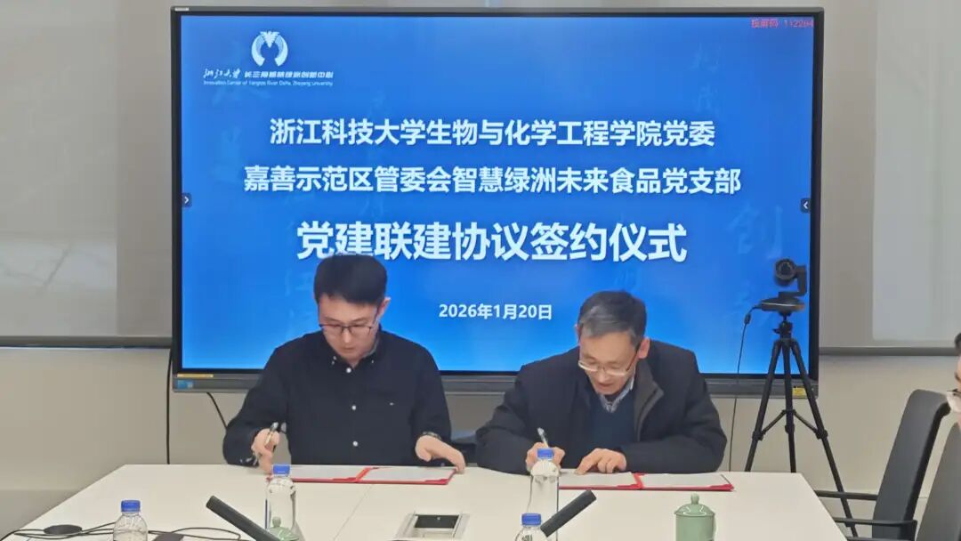 为深入学习贯彻习近平新时代中国特色社会主义思想,深化党建引领下的产学研协同创新,1月20日下午,生物与化学工程学院与浙大智慧绿洲创新中心未来食品实验室在祥符荡科创绿谷11号楼201会议室举行党建联建签约座谈会。未来食品实验室副主任丁甜主持会议,生物与化学工程学院党委书记路胜利、党委副书记吴元锋,未来食品实验室主任助理、党支部书记刘冠辰及双方党员代表出席会议。
