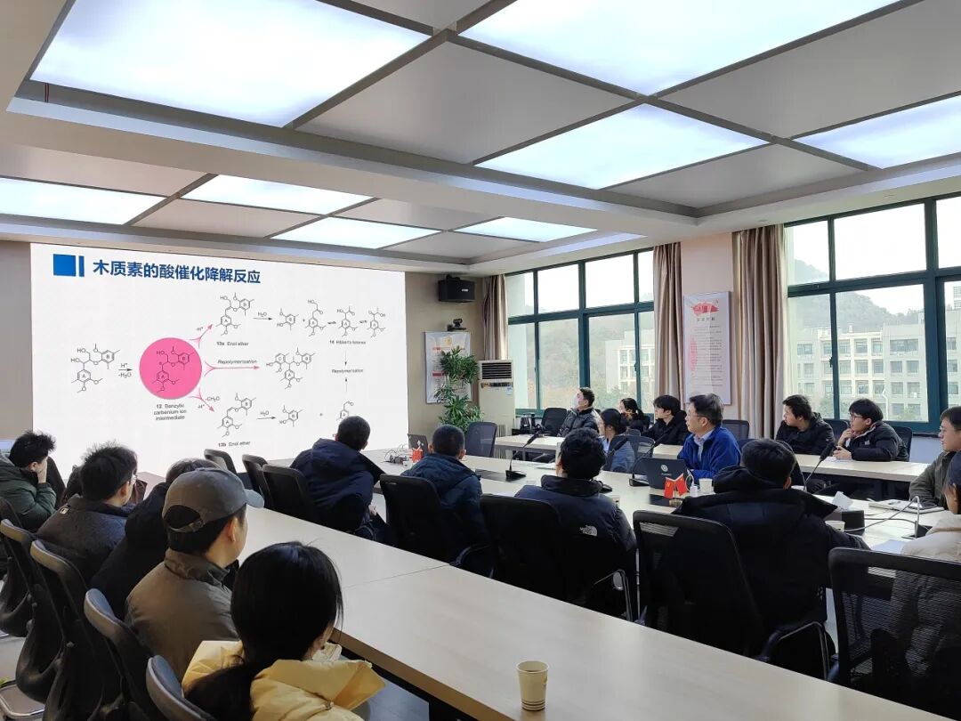 在交流互动环节,现场师生围绕木质素稳定性、应用瓶颈突破等问题积极提问,金永灿教授结合自身多年研究实例与行业前沿动态,深入浅出地逐一进行专业解答,既剖析了技术难点,也分享了实践经验,为在场师生厘清了研究思路。
