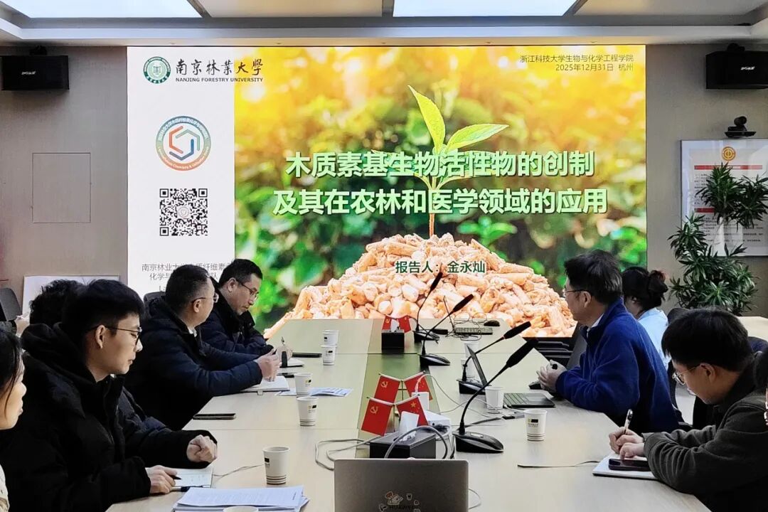 讲座中,金永灿教授系统介绍了团队近年来在木质素基生物活性物质创新研发领域中的核心技术与关键突破,详细阐释了这类物质在生物医学、农业和林业领域的应用场景与产业价值,深入解析了如何推动工业副产物木质素向生命科学和技术领域的生物活性物质转化,为生物质资源的绿色低碳发展提供了新思路、新路径。