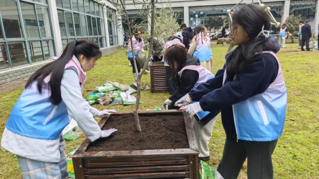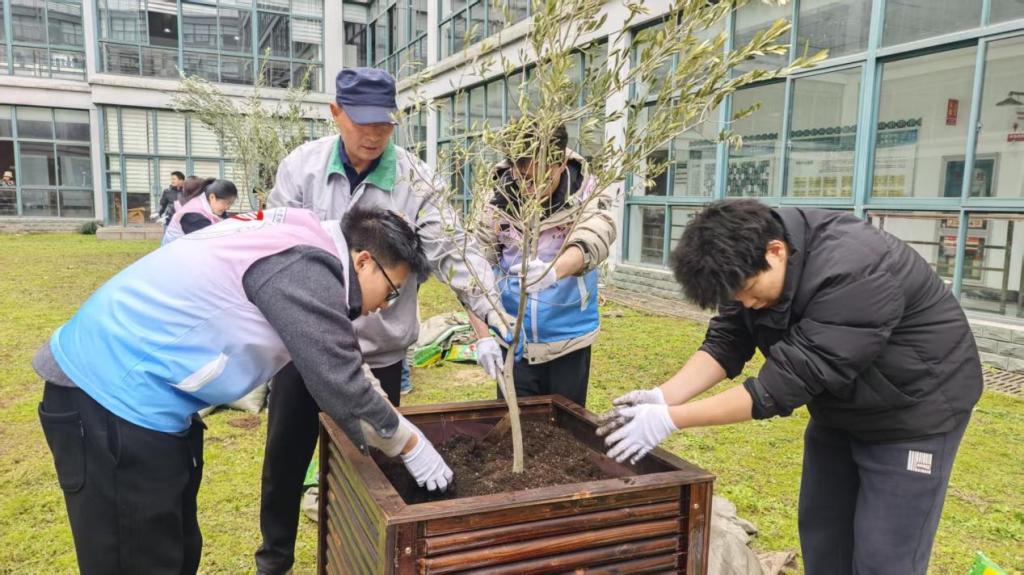 栽植环节,师生们分工协作、挥锹培土、扶苗浇水,亲手将10棵橄榄树苗植入沃土,共同打造学院特色“橄榄林”文化景观。大家在躬身劳作中体悟劳动之美,在栽培养护中传递责任担当,为校园添上一抹生机盎然的橄榄绿。