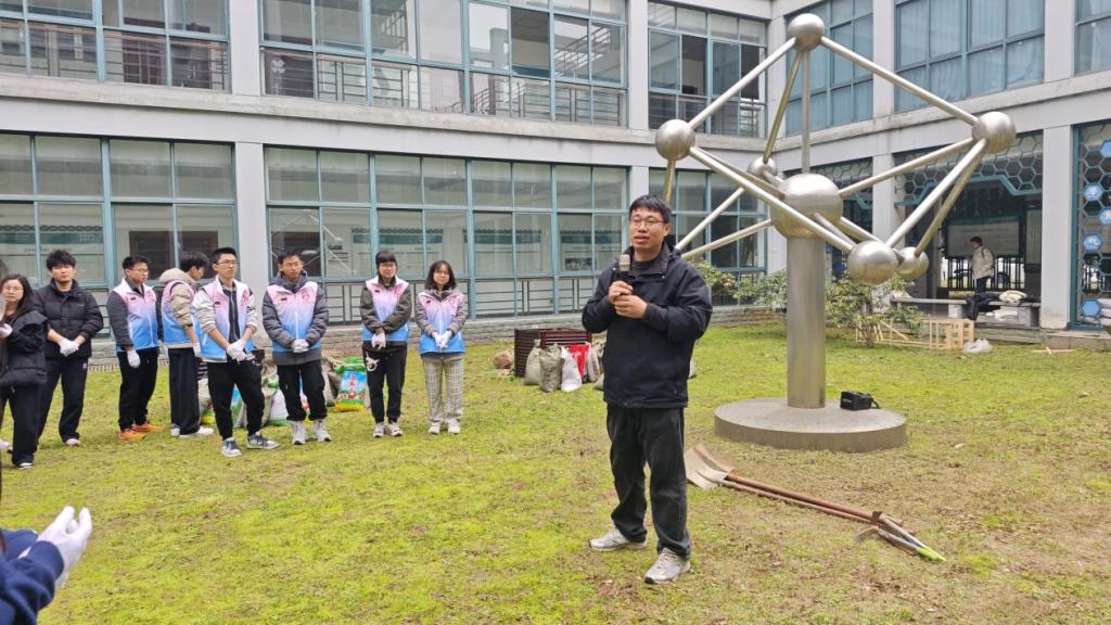 3月16日中午,生化学院30余名师生齐聚学院一楼中庭,正式启动“康园”大思政健康文化阵地建设。学院党委书记路胜利、党委副书记吴元锋、学术副院长吕鹏及师生党支部书记、20余名同学参与活动。本次活动由学院志愿者协会、牛讯文化传媒中心联合承办,学校后勤绿化队提供专业支持与技术指导。