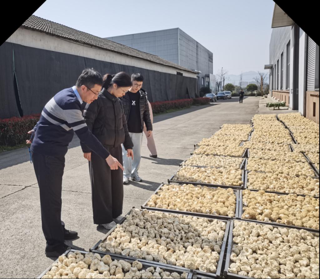 下午,章仕诚科长陪同专家团队走访浙江天泉生物科技有限公司,与公司负责人韩鸿翼就猴头菇等食用菌产业发展态势进行深入交流,并实地考察生产车间。省科技副总葛青在产品开发与市场拓展方面为企业提供专业指导,有效助力企业创新发展。
